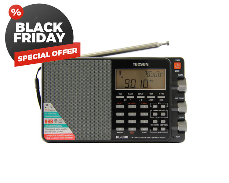 TECSUN PL-880 is a portable PLL DSP multiband receiver that can receive FM, Longwave (LW), Medium Wave (MW) and Shortwave (SW) frequency bands and is Single Sideband (SSB) capable.
